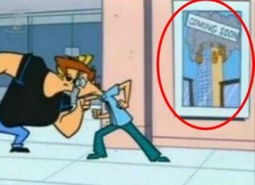 Vooraankondiging van de 9/11 aanslagen in de animatieserie The Simpsons en “Coming soon” in Johnny Bravo tekenfilm.