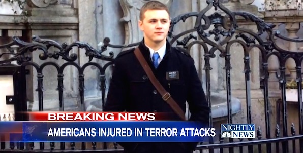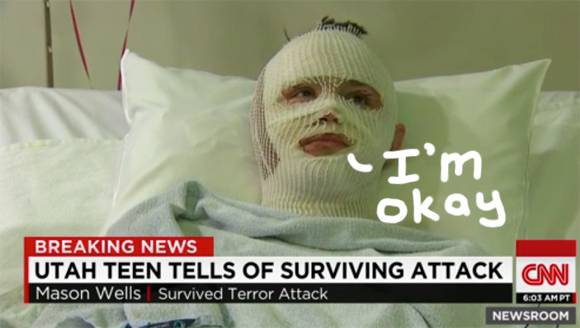 Mason Wells, de grootste pechvogel in de wereld en ‘slachtoffer’ bij wel 3 (!) terroristische aanslagen. Mason raakte gewond bij de Boston Marathon (foto links), hij lag onder de vuurlinie tijdens de aanslagen in Parijs (tweede foto), om vervolgens weer in Brussel op te duiken waar hij in het nieuws kwam met zijn gezicht volledig in het verband vanwege ‘ernstige brandwonden’ die overigens een paar dagen later weer wonderbaarlijk genezen zijn. Moet hij daarom niet gezien worden als de grootste geluksvogel? Want hij overleefde alle 3 de aanslagen en ontving waarschijnlijk een leuke loonstrook voor zijn acteerwerk tijdens deze valse-vlag-aanslagen.